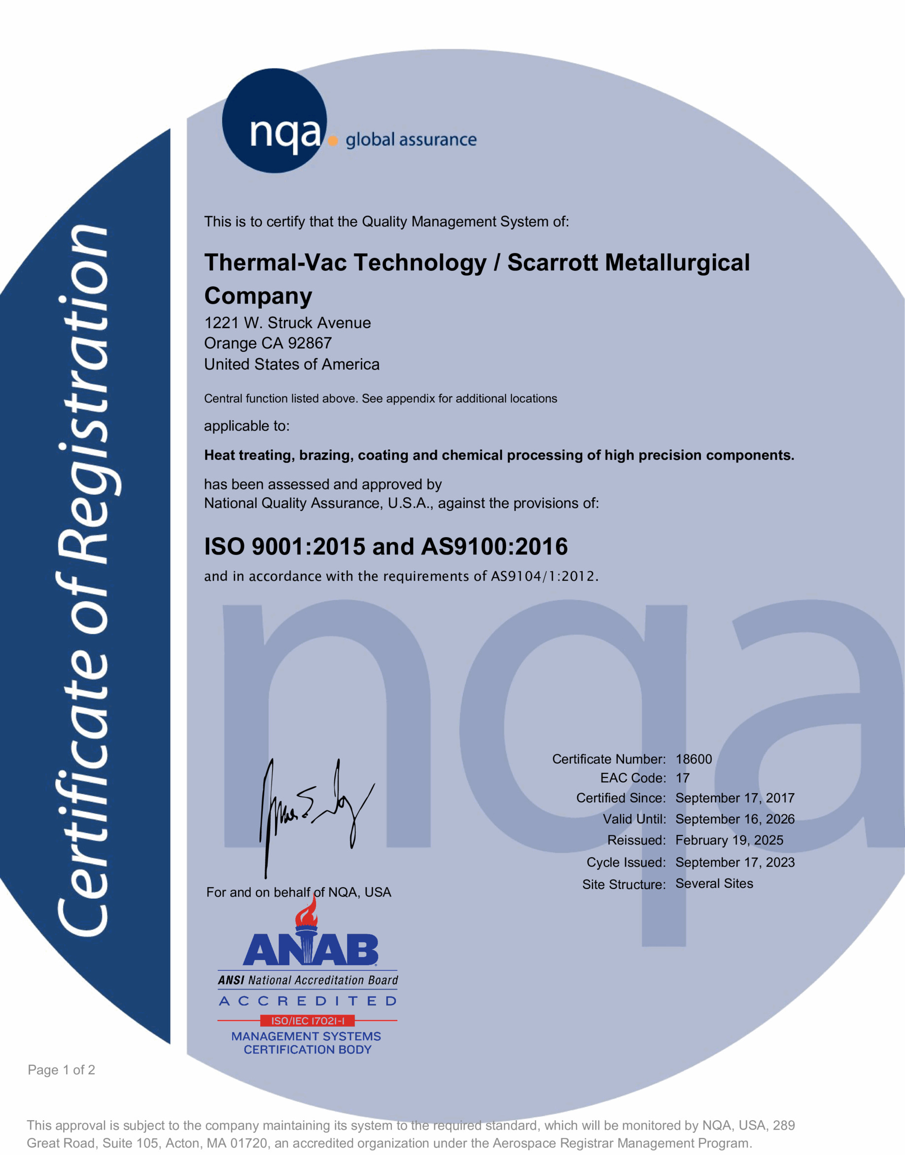 Thermal-Vac has received certified recognition by these top accreditation programs.
